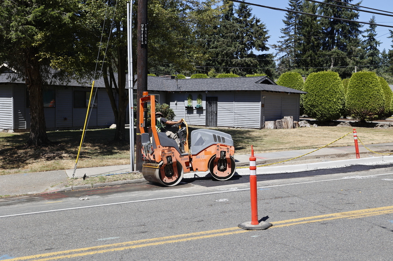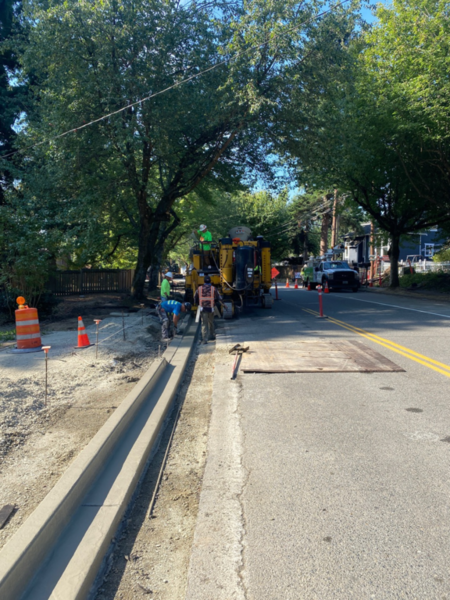 New curb & gutter, sidewalks, bike lanes, illuminated rectangular rapid flashing beacon crosswalks, speed feedback signs, ADA curb ramp retrofits, sidewalk panel repair, curb extensions, HMA planing and overlay, utility coordination, storm drainage, water main, water services, tree preservation and planting, permanent signing, and channelization.