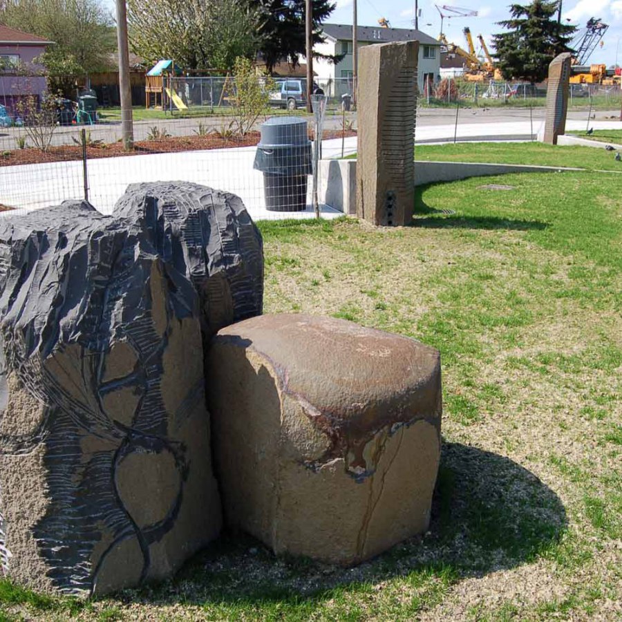 - Remove existing basalt stone structures and stone, remove boulders and store